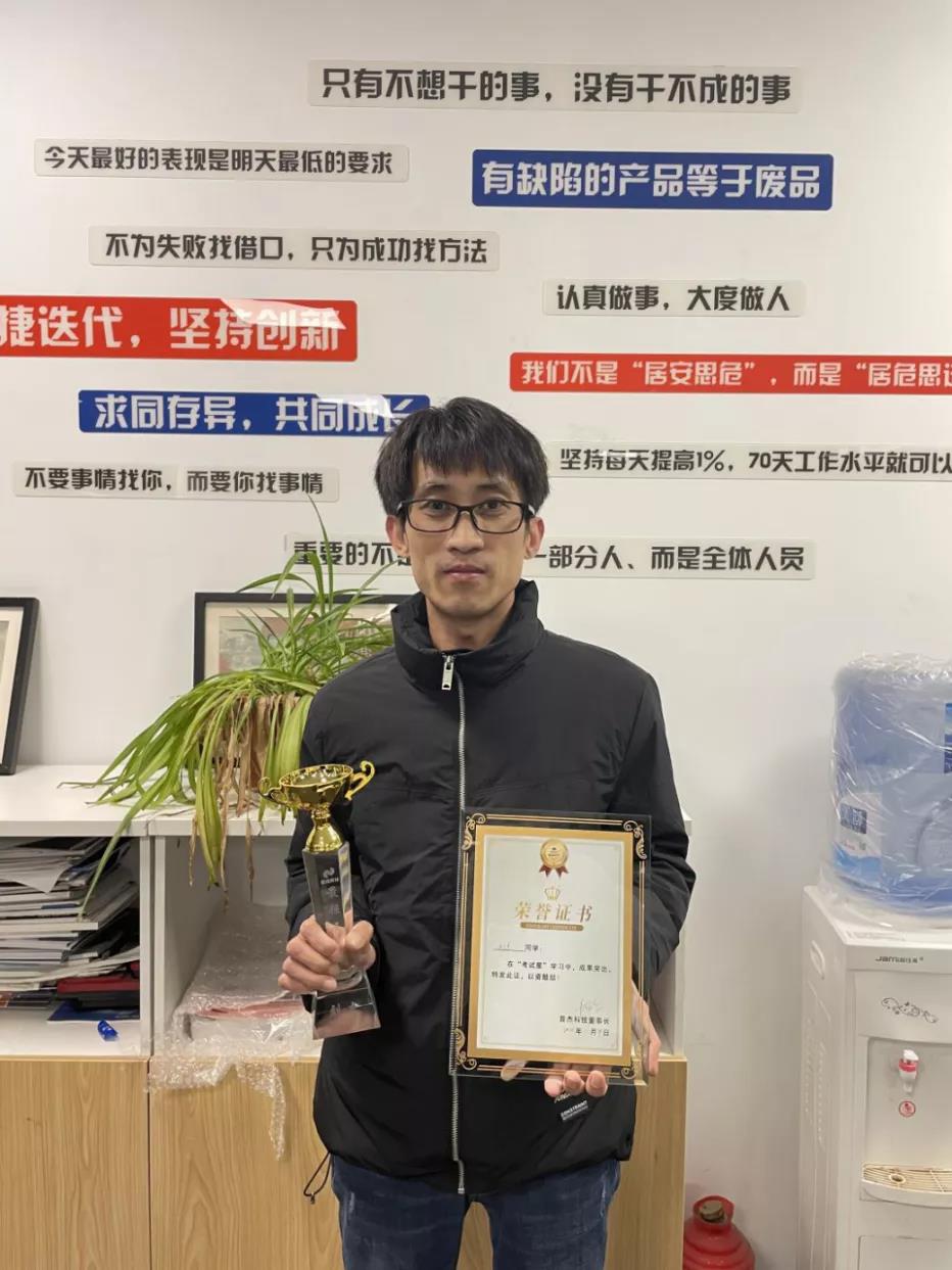 在考試星11月答題中,劉杰以出色的業(yè)務(wù)水平及豐富的專(zhuān)業(yè)知識(shí)儲(chǔ)備在測(cè)試中名列前茅,摘得桂冠。授予此獎(jiǎng)不僅表?yè)P(yáng)劉杰在考試星中的優(yōu)異表現(xiàn),更是對(duì)他在普杰工作中的認(rèn)真態(tài)度和出色能力表示肯定,希望他能夠再接再厲,成為更優(yōu)秀的自己。