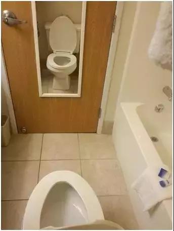 這酒店特地設(shè)計(jì)了一面鏡子給馬桶,