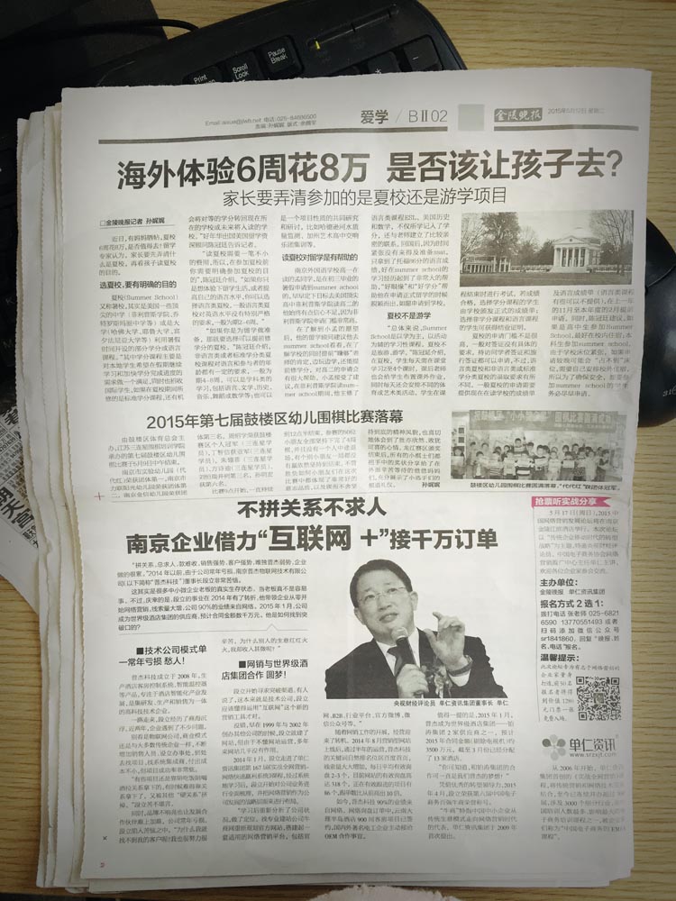 2015年5月12日,《金陵晚報(bào)》的BⅡ02版的下半版刊登了一篇名為《不拼關(guān)系不求人——南京企業(yè)借力“互聯(lián)網(wǎng)+”接千萬訂單》的文章。文章內(nèi)容是南京普杰物聯(lián)網(wǎng)技術(shù)有限公司(以下簡(jiǎn)稱“普杰科技”)運(yùn)用網(wǎng)絡(luò)營(yíng)銷獲得成功的過程。