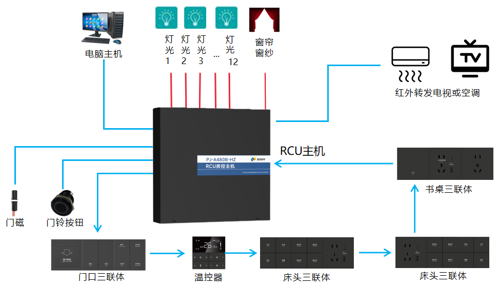 中端酒店智能客房的最新首選,布線最簡(jiǎn)單、最省的方案